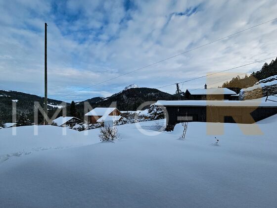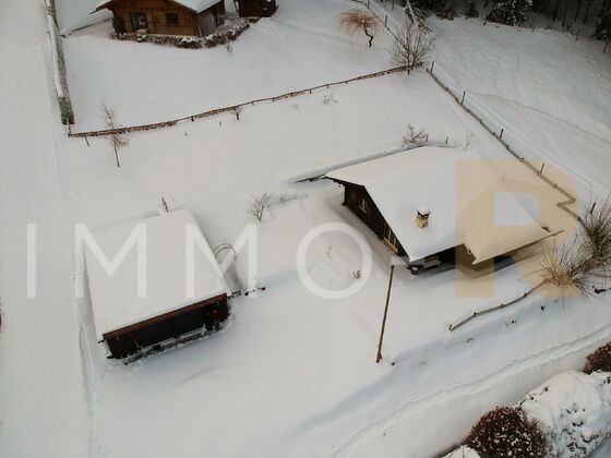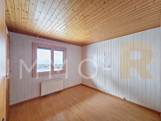 Implanté sur une belle parcelle de 1’347 m², le chalet bénéficie d’un potentiel d’agrandissement conséquent (environ 290 m2, avec une possibilité de seconde habitation).