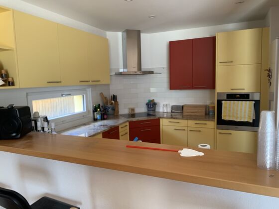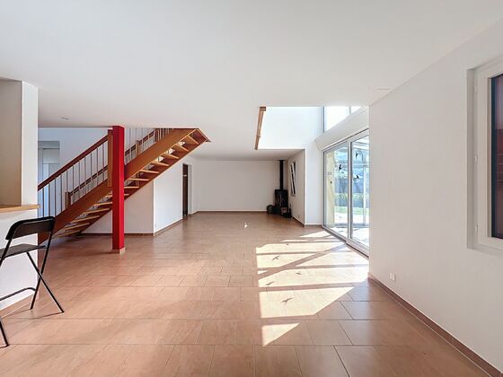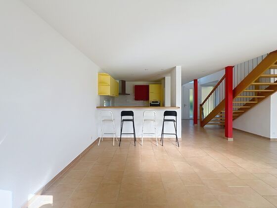 Le rez-de-chaussée se compose d’une vaste cuisine ouverte, moderne et fonctionnelle, prolongée par un lumineux séjour avec coin repas et un agréable espace lecture ou bureau.