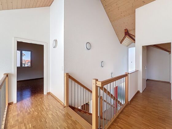 Une mezzanine apporte une belle ouverture et inonde le niveau de lumière naturelle.